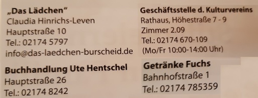 Den Besuchern, die die Liebe im Bistro Verde kommen und gehen sahen und den Besuchern des Badehauses Burscheid herzlichen Dank. Die Presse berichtet freundlich. Link folgt.